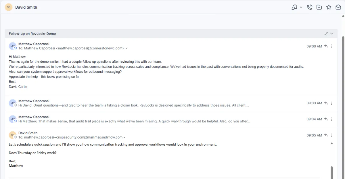“RevLockr gave us complete visibility across every client interaction. What used to take hours to audit now takes minutes. It’s become a core part of our compliance process.”